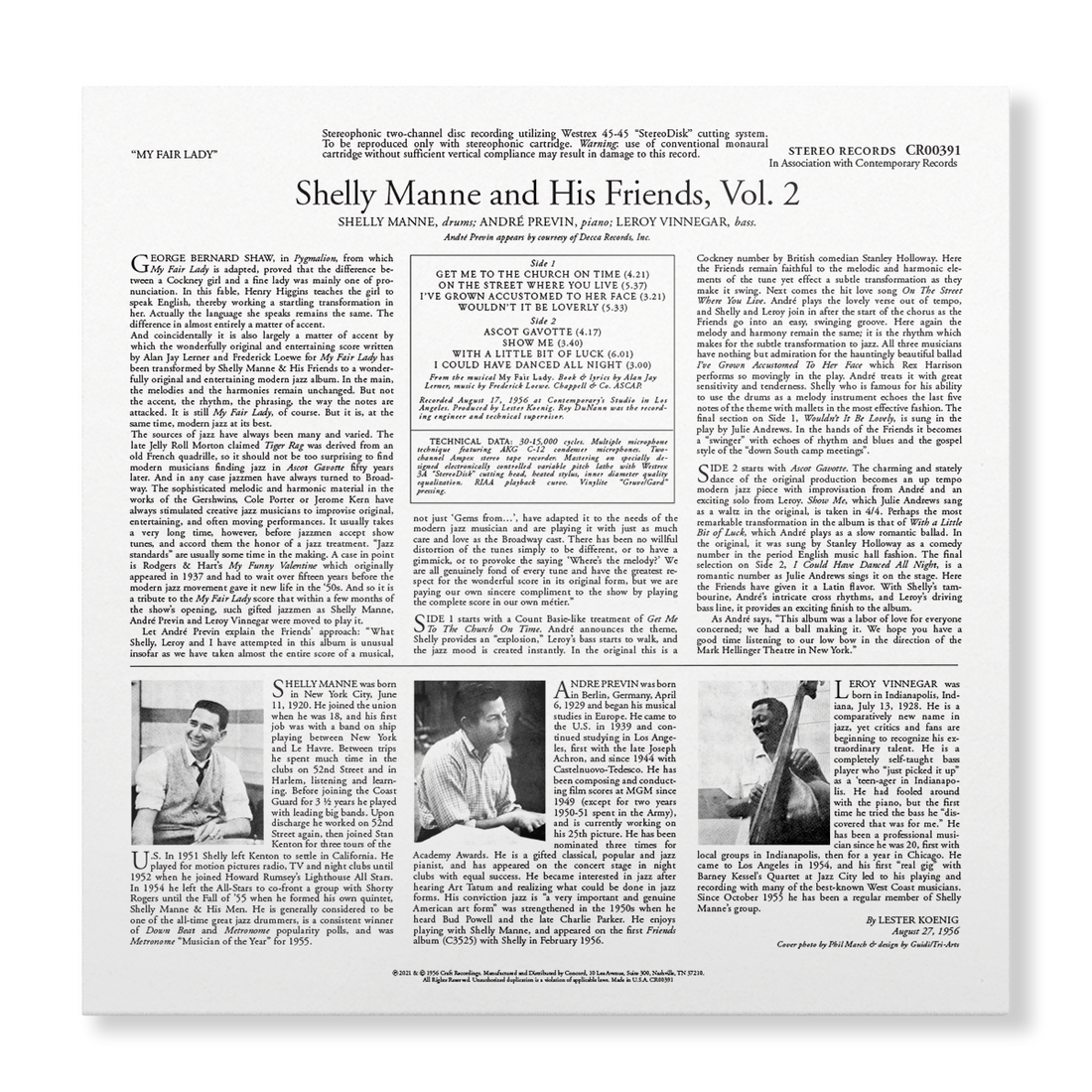 Released as part of the Acoustic Sounds Series celebrating 70 years of Contemporary Records, Shelly Manne & Friends' My Fair Lady is the first album to ever consist of jazz versions of songs from just a single Broadway musical. First released in 1956 and recorded by legendary engineer Roy DuNann, this new edition features ALL-ANALOG mastering from the original tapes by Bernie Grundman. The record is pressed on 180-gram vinyl at QRP and presented in a Stoughton old-style tip-on jacket.