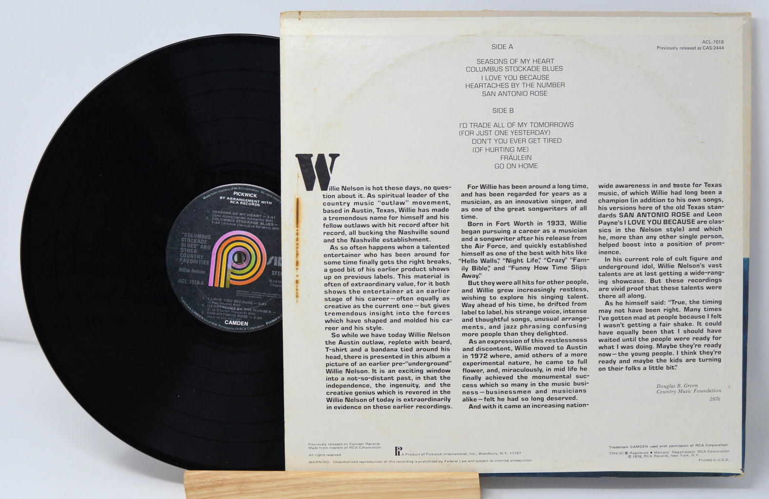 Used Vinyl Record - Willie Nelson - Columbus Stockade Blues