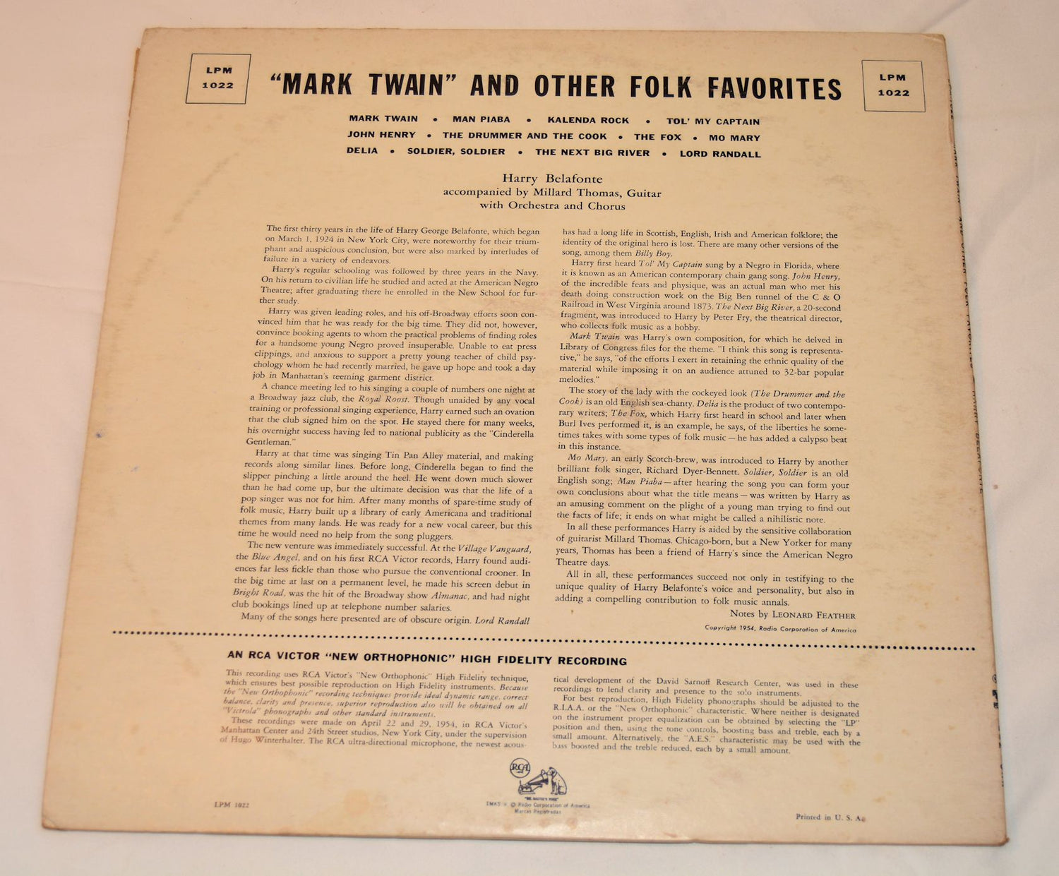 Vinyl Record, Used - Belafonte, Harry - Mark Twain
