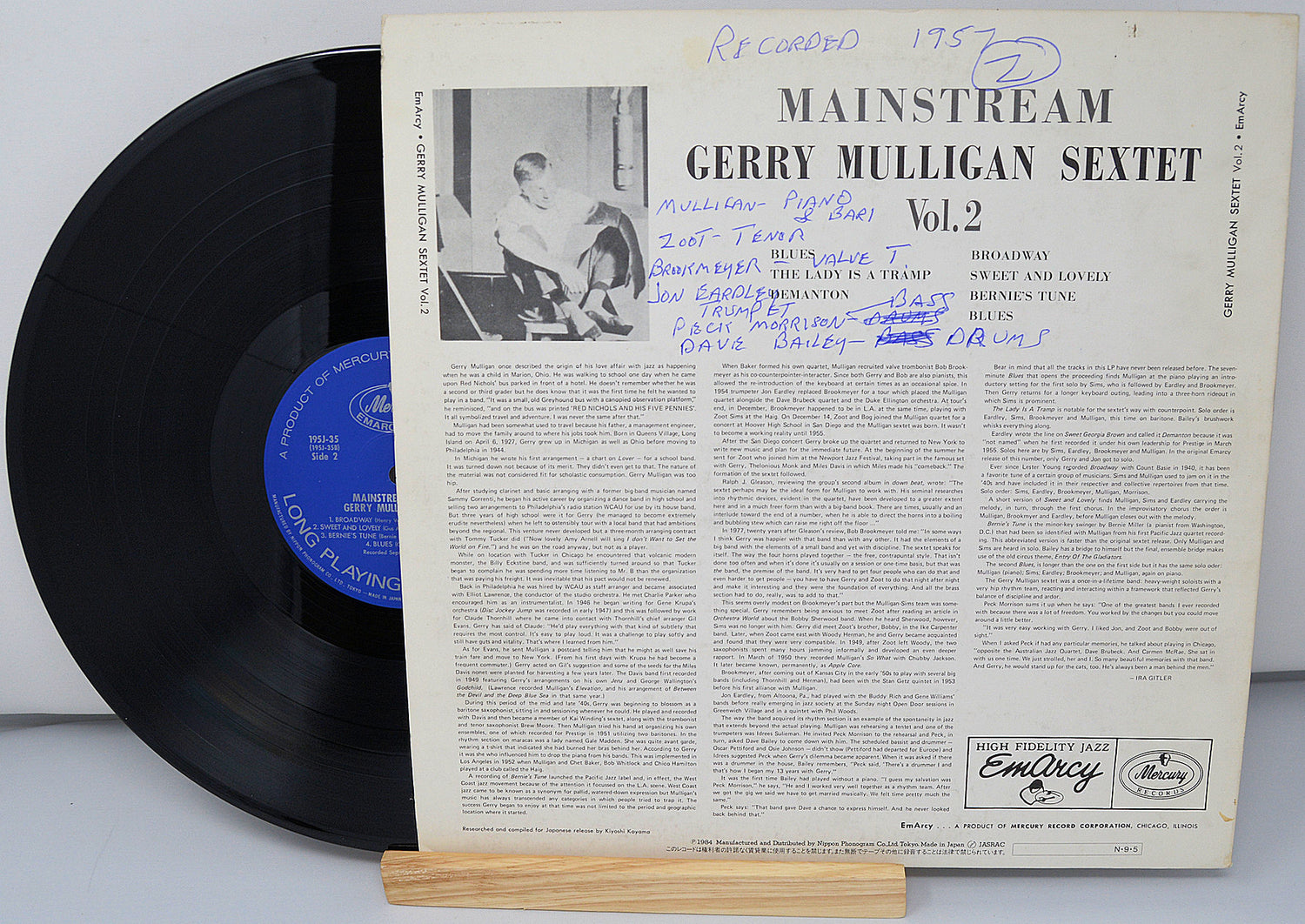 Used Vinyl Record - Mulligan, Gerry - Mainstream of Jazz Vol 2