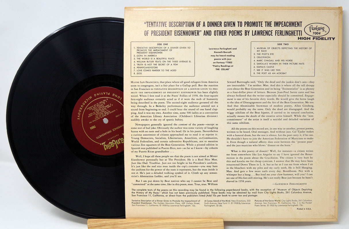 Used Vinyl Record - Lawrence Ferlinghetti - Tentative Description Of A Dinner To Promote The Impeachment Of President Eisenhower And Other Poems