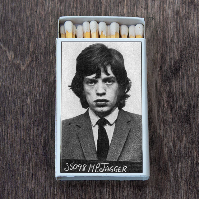• Light your candles and incense with these stylish decorative matches • This unique box of matches features the mug shot of Mick Jagger on both sides • Each box contains 20-23 matches and measures about 2.25”x1.5”x.5”.