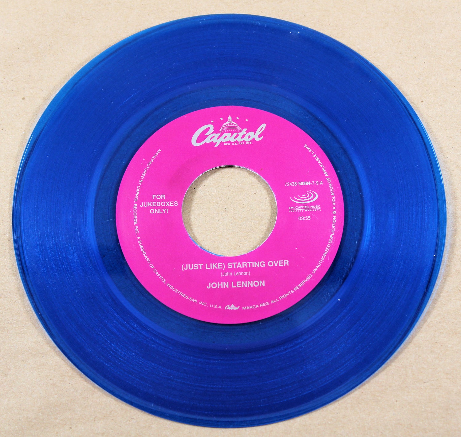7", Blue Transparent, "For Jukeboxes Only"